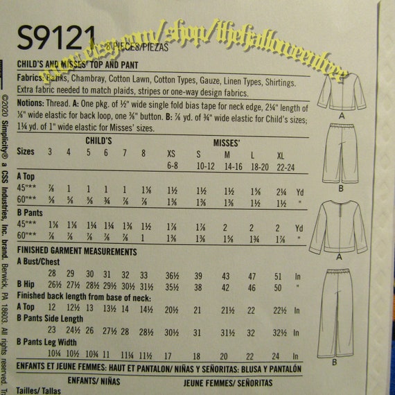 Simplicity 9121 Schnittmuster S9121 Kinder Misses Top Hose Etsy De